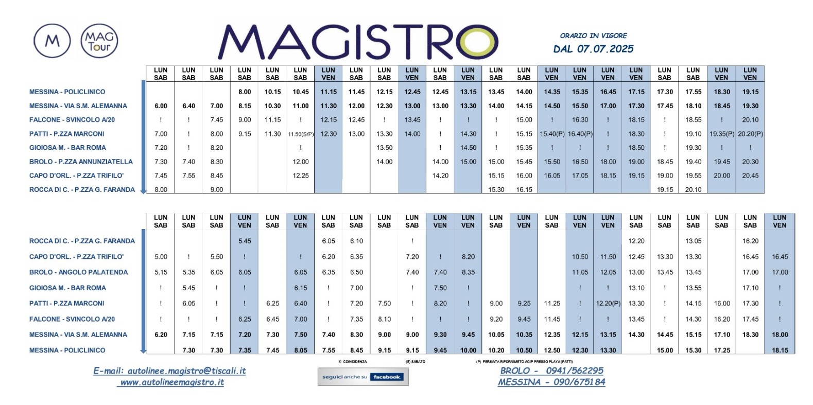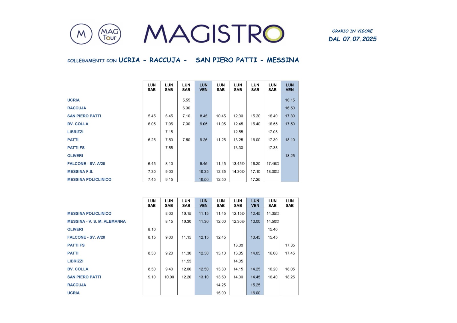 Si informa la cittadinanza che a partire da lunedì 7 luglio, il Comune di San Piero Patti sarà ufficialmente servito dal nuovo gestore del trasporto pubblico locale: